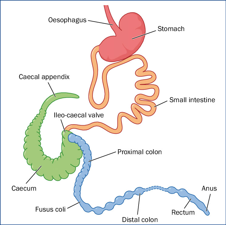 Slijepo crijevo zauzima oko 43% probavnog trakta i razlikuje se od ostalih probavnih procesa jer ovdje ne djeluju enzimi, zbog čega može iskoristiti sastojke hrane koji se ne mogu enzimatski razgraditi u tankom crijevu.